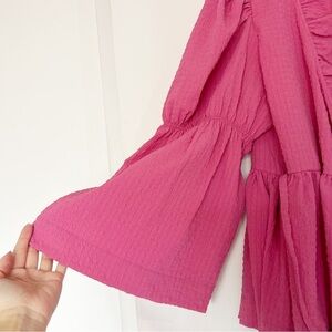 byTiMo Pink Bubble Wrap Crinkled Puffed Shoulder Blouse