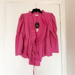 NEW byTiMo Pink Bubble Wrap Crinkled Puffed Shoulder Blouse Size XL