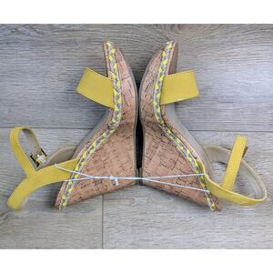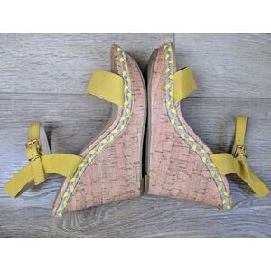 NEW Μe Τoo Montana Cork Jute Platform Slingback Wedge Sandals 7 Yellow Mustard