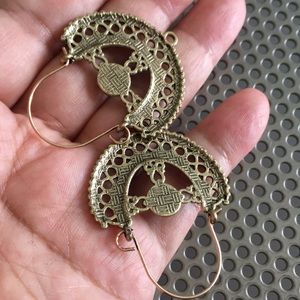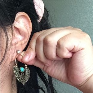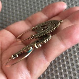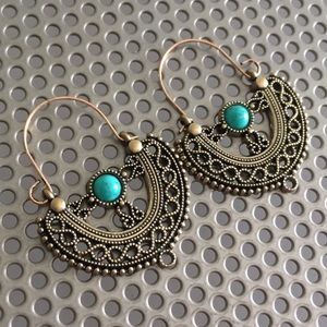 NEW brassy-goldtone earrings with teal blue cabochon.