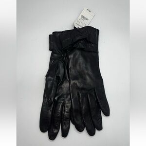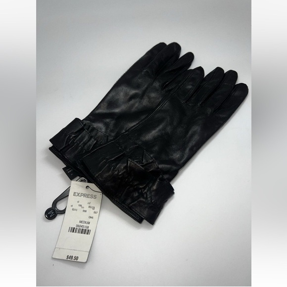 Genuine Black Real Leather Gloves Ruffle NWT women’s Medium $49.50 MSRP Express
