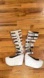 With a zipper in the back, you’ll only have to do those buckles up once. Better suited for thicker calves, few scratches from being out of box, minor scuff on bottom sole from being tried on never worn outside