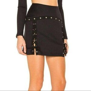 NEW h:ours "Thompson" Black Lace Up Ribbed Mini Skirt Sz. S