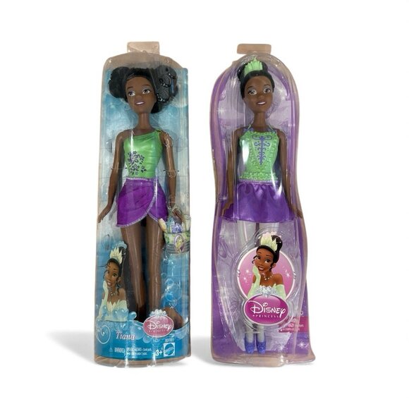 Bundle set of 2 Tiana Princess fashion dolls inside original box. Box may have some light wear-dolls are new. Great for a gift this holiday season, birthday or to keep for your collection.