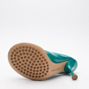 Bottega Veneta EU38 US8 Supergloss Leather Mule Heel Shoe Turquoise Dot Sock