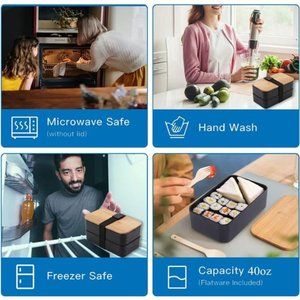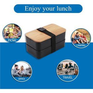 NEW in Box - Japanese Bamboo Box, Lunch Bag Meal Prep Black for Kids & Adults