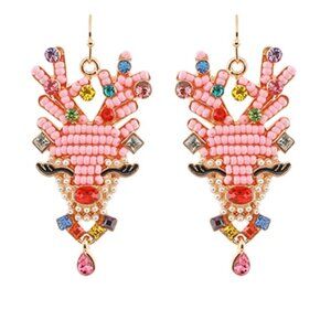 NEW in Gift Pouch - Reindeer Crystal & Beaded Christmas Holiday Pink Earrings