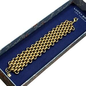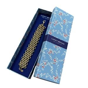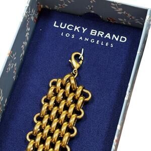 NEW Lucky Brand gold plated chain bracelet in a great wide/chunky Boho Classic look. Lobster Clasp and rich patina on the golden finish. In the box - this pretty bracelet is totally giftable! Or add to your own collection today!