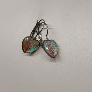 Adorable hanging iridescent mermaid scale earrings. Set in silver plating; lead/nickel free