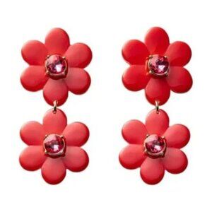 These Floral Linear Earrings from kate spade new york x Target add a pop of color to any outfit. Made from plastic, these linear earrings are designed with two stacked red flowers studded with faux gemstones.