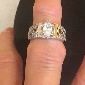 NEW ladies ring in size 10, large center stone with scrolling & small stones