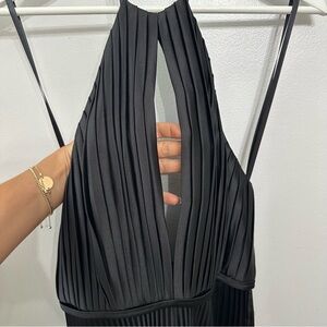 Halter Neck Keyhole Detail Pleated Jumpsuit, blending sophistication with modern charm. Crafted from luxurious satin fabric, it features a flattering halter neckline and captivating keyhole detail, ensuring you stand out at any occasion.