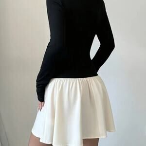 Brand new sample dress modern minimalist fit flare twofer black ivory DRESS by COMMENSE