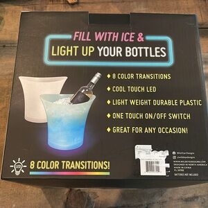 Set the mood with this great ice bucket. Changes eight different colors. In the box have never removed received as a gift and I have two.