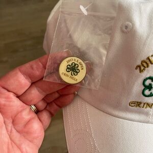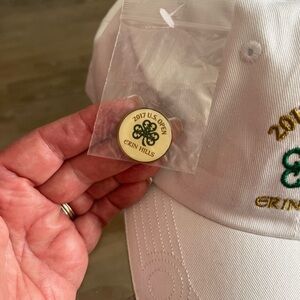 NEW. Never worn this hat is pristine 2017 US open beautiful green shamrock embroidery Erin Hills cap with ball marker never used out of the plastic