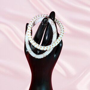 These bracelets are brand new, never worn and will come with the original organza bag and informational card. They fit small to medium wrists 6"-7.75". The bracelets are easy to wear and are rolled on to your wrist. Very durable and a must have fashion accessory.
