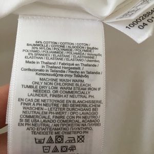 Brand new (with tags) no iron shirt. It's seriously the most amazing shirt. It does run a little big. I'd say it's more a 4-6 size than a 2. There's spandex in the fabric so it's so comfortable.
