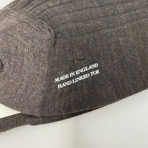 NEW pantherella brown superfine merino wool hand linked toe mens socks