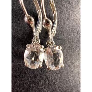 Genuine oval cut petalite gemstones prong set in authentic 925 sterling silver plated with rhodium. Lever backs are also 925 sterling silver. Total weight is 2.00 grams. 2.75 ctw. Djoy. Made in India. Estimated retail value is $240.00