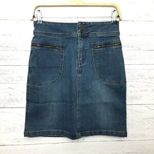 NEW prAna Women's Jean Skirt Broadway Denim Skirt True Blue Pockets size 0
