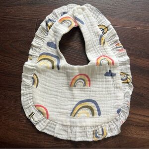 NEW set of 2 ruffle baby girl bibs with hearts and rainbow designs