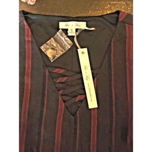 This blue and red striped dress from She & Sky is a must-have for any wardrobe. With its V-neckline and long sleeves, it's perfect for any occasion, from casual outings to workwear and even travel. The pullover closure makes it easy to wear and the knee length adds a touch of elegance.
