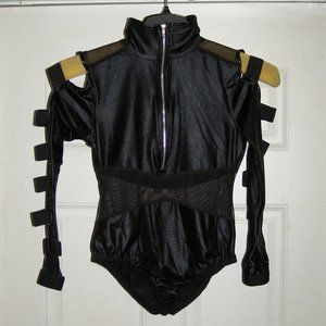 NEW size M Black Stretchy Bodysuit w/Strappy Sleeves