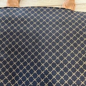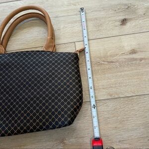 NEW Small brown and camel colored handbag. Zippered closure, gold hardware, brown and tan patterned design. Measurement shown. No strap.