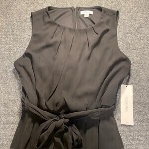 NEW tags Calvin Klein Black Sleeveless Belted Fit Flare Classic Dress Womens 12