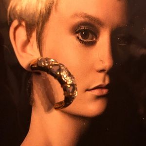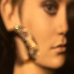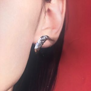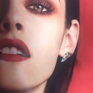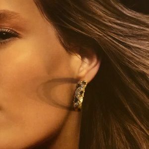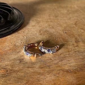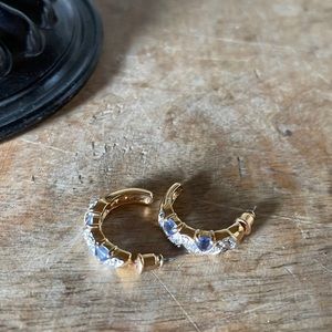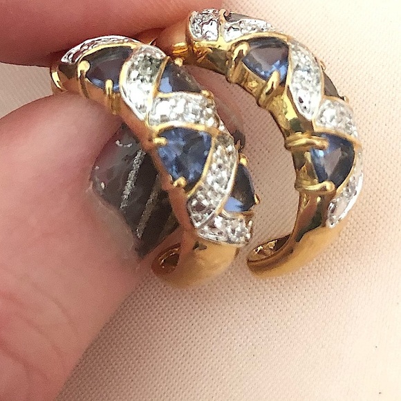 NEW tanzanite CZ gold half moon hoop earrings hoops gemstone
