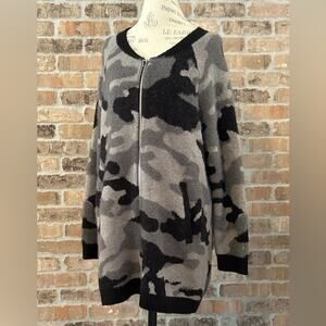 NEW torrid $78 camo black gray full zip fuzzy sweater size 1x soft comfort