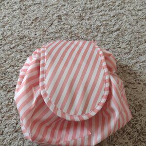 NEW pink and while stripe drawstring travel pouch for jewelery, clothes - velcro seal compact size. Smoke-free and pet-free home.