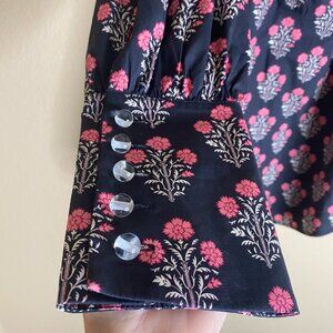 tuckernuck black floral print long sleeve blouse - size medium - new without tags