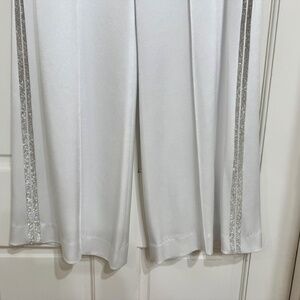 NEW w Tags $550 Alice + Olivia White Satin Pants w Rhinestone stripe sz 8