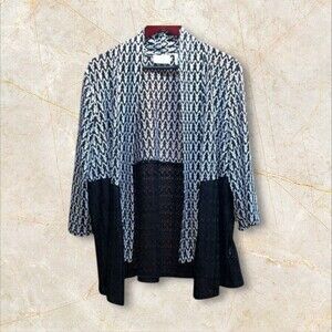 Alfred Dunner black and white open front cardigan, size 1X