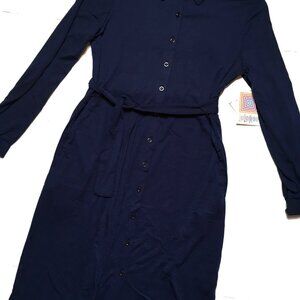NEW w/ Tags Lularoe Ellie Shirt Dress Blue Solid Navy Full Button NWT