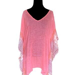 NEW w/ Tags Sunny Oceans Beach Cover Up Caftan 100% Cotton Pink Small/Medium