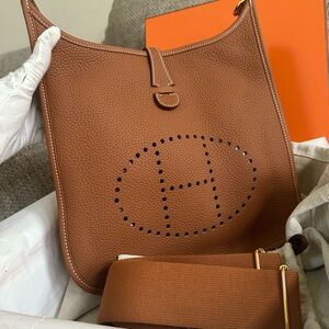 New Full set HERMES Taurillon Clemece GHW Evelyne III PM 29 in Gold GHW