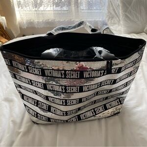 NEW w/Tag Victoriaโs Secret bag weekender black silver sequins tote zip closure