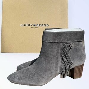 🌻NEW w/box Lucky Brand Zakina Storm Oiled Gray Fringe Detailed Booties Size 9.5
