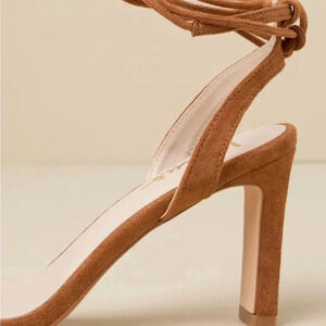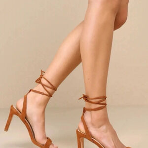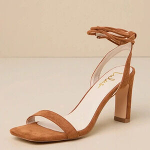 You'll always reach for the Lulus Troyes Brown Suede Square Toe Lace-Up High Heel Sandals when you need to add a chic finishing touch to any look! These sleek heels feature a soft faux suede construction that shapes a single sole silhouette, a square toe bed, and a slender toe strap. A matching heel strap supports long laces that wrap around and tie above the ankle, while a trendy blade heel completes the stunning design!