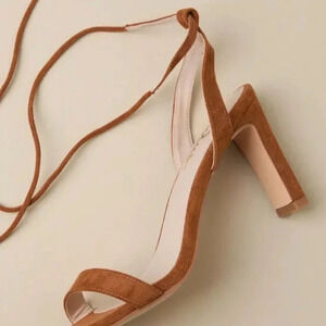 NEW with Tags (NWT) Troyes Brown Suede Square Toe Lace-Up High Heel Sandals