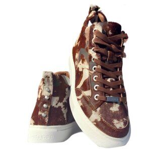 NEW with box J SLIDES NYC BROWN PONY LEATHER COWHIDE SNEAKERS WOMANS Size 6