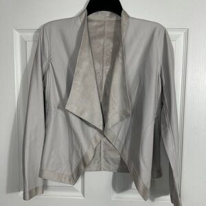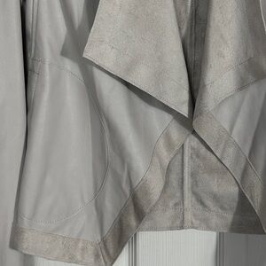 Gorgeous new with tags BB Dakota Arianna faux leather jacket in a soft gray. Open front, long sleeves. 100% polyurethane. Rounded side pockets. It's soft, supple, and beautiful -- pictures truly don't do it justice.