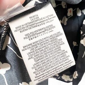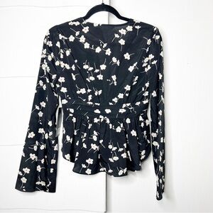 New with tags, perfect condition, no flaws or signs of wear. Size Small. Black long sleeve blouse with white floral pattern, gathered button detail waist.