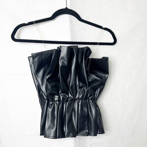 Strapless ruched faux leather strapless top