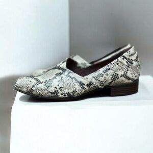 🌻 NEW with tags Clarks Juliet Snakeskin Palm Flats || Size 7 Wide Width