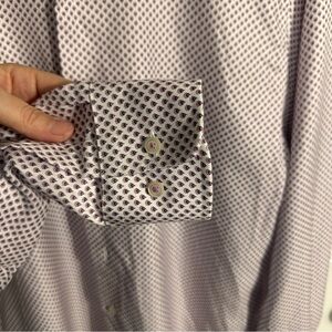 Gorgeous David Donohue Fusion men's button down shirt, white/berry. 100% cotton. Size medium/15.5.