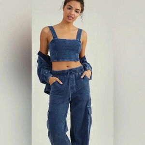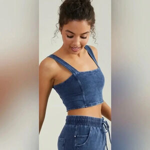 Introducing the brand new with tags (NWT) Altar'd State Day To Day Denim Tan! This lightweight and stretchy faux denim tank is the perfect addition to your wardrobe. Pair it with the Day To Day Cargo Pants for a flawlessly coordinated look. The smocked bodice, cropped style, and faded finish give it a stylish and flattering fit. It's designed to be fitted and features a convenient slip-on closure. Made with 94% cotton and 6% spandex, this top is designed in the USA and is sleeveless for a comfortable and trendy look.