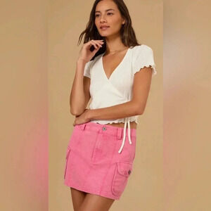 Elevate your style game with the NEW with tags (NWT) Altar’d State Marissa Twill Cargo Skirt. This versatile skirt combines functionality and fashion, making it a must-have addition to your wardrobe. Crafted from high-quality twill fabric, this skirt is durable and comfortable for all-day wear. The cargo pockets add a touch of utility-inspired detail, while the twill material gives it a refined look.